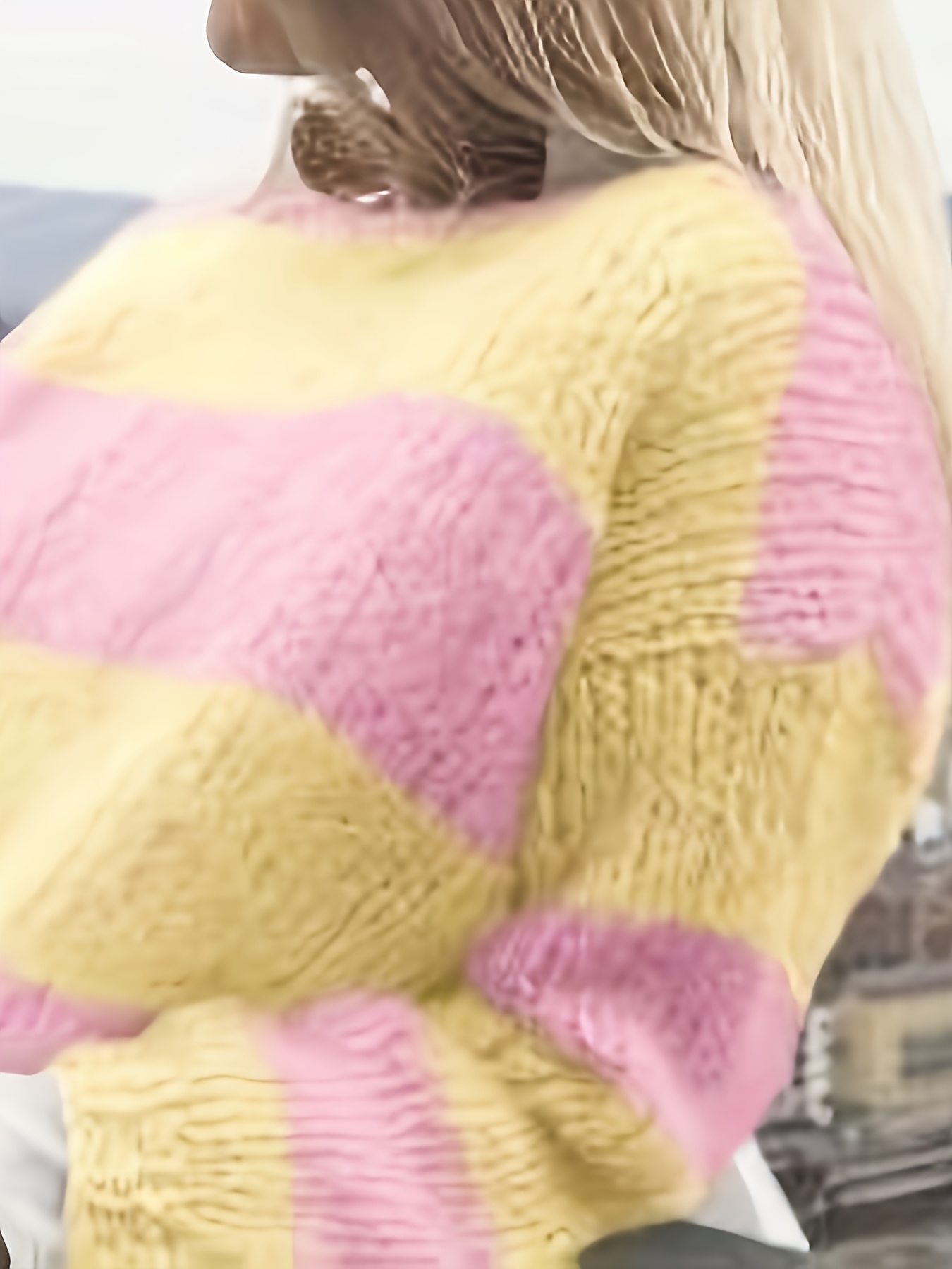 Plus Size - New Striped Color-Blocked Sweater for Autumn And Winter, a Loose-Fitting Plus-Size Rainbow Sweater for Women That Makes You Look Younger.