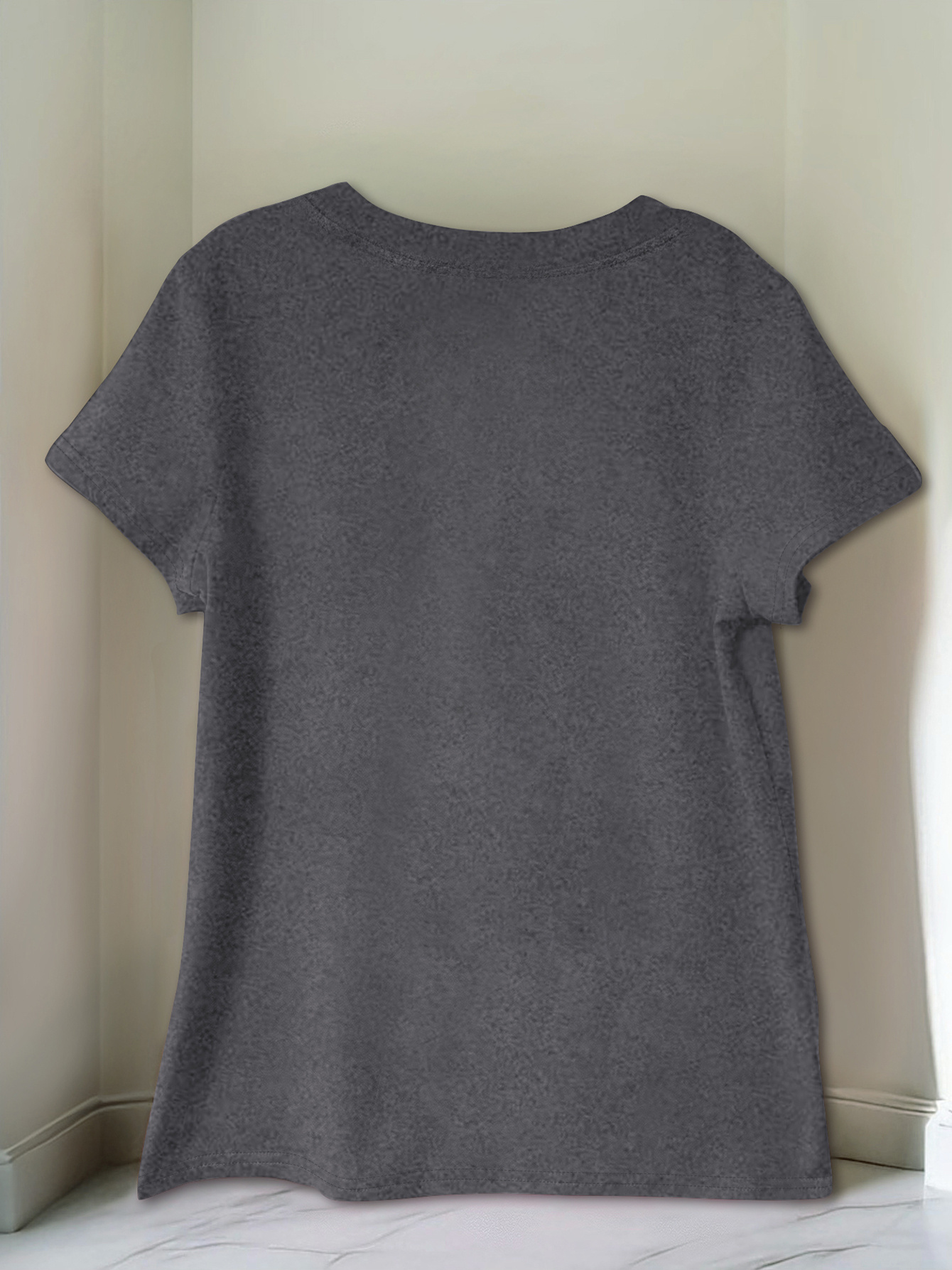 Women's Casual Short-Sleeve T-Shirt with "OUT OF ORDER" Print, Round Neck, Geometric Pattern, Machine Washable, Spring/Summer Vacation Wear, Regular Fit, Dark Grey, Relaxed Fit Top | Geometric Print Tee | Stylish Details