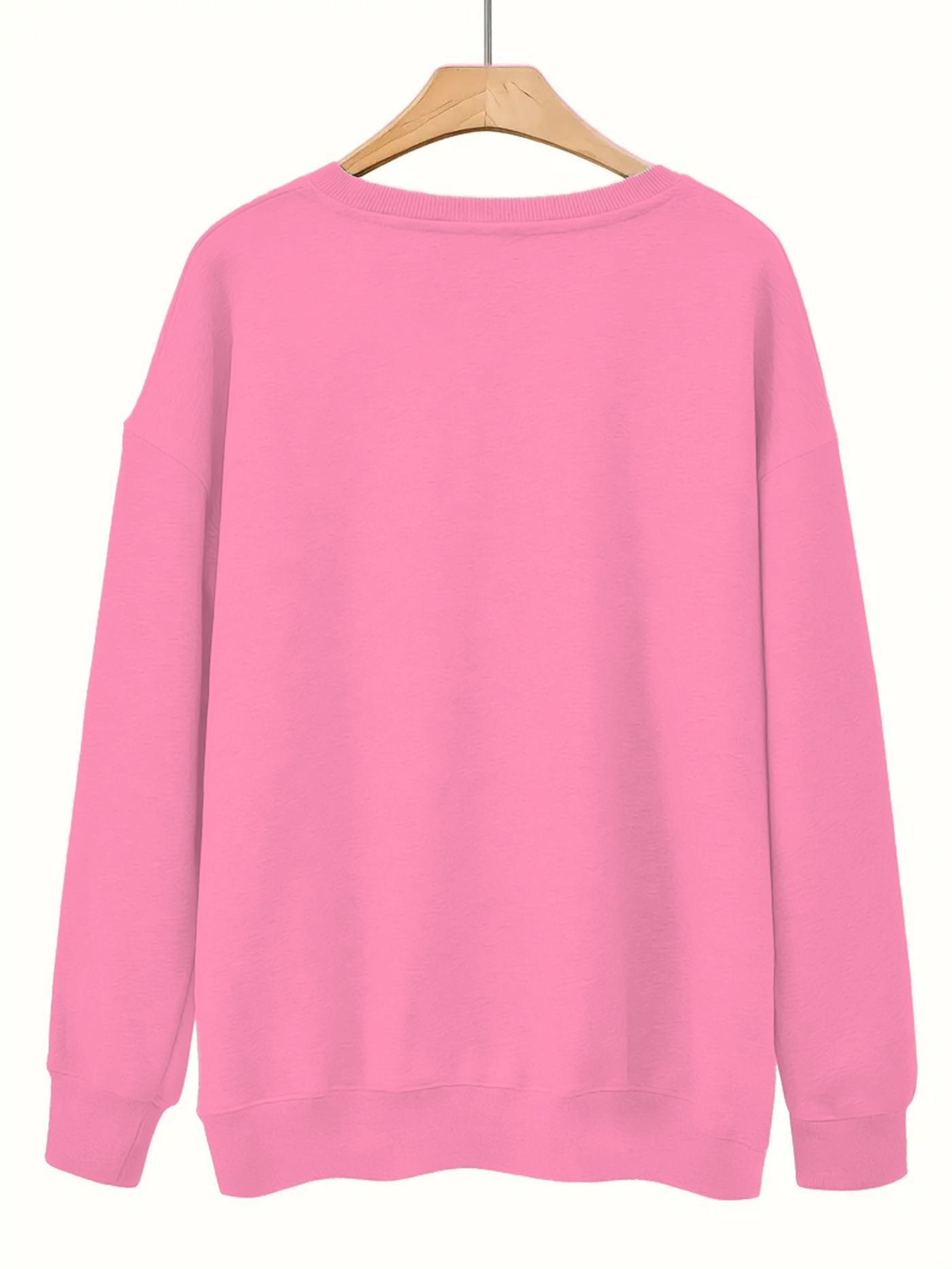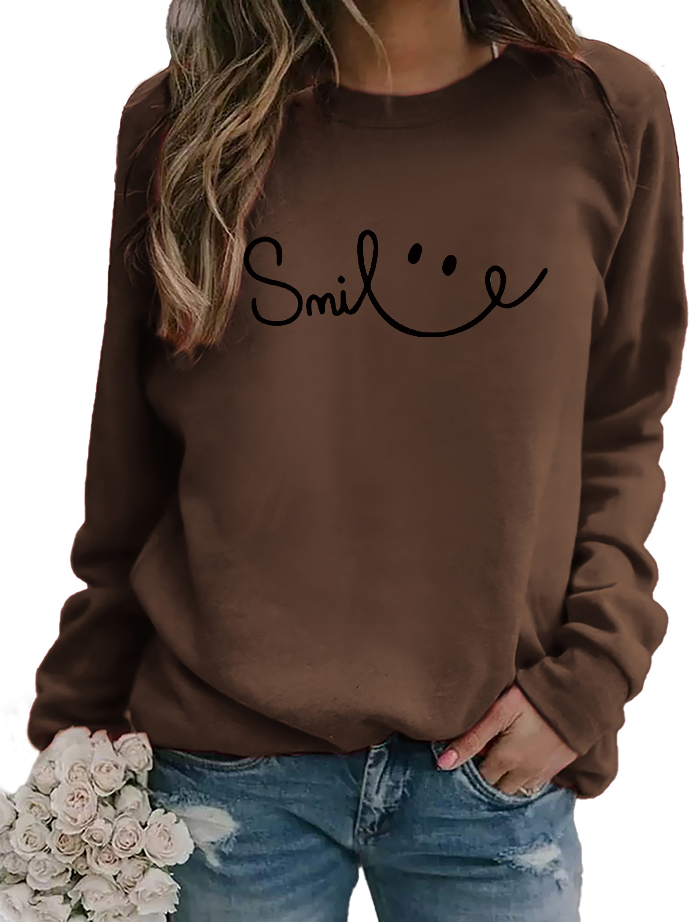 Women's Red joyful Face & Smile Letter Print Sweatshirt - Soft Machine-Washable Polyester Crew Neck Long Sleeve Casual Pullover for Fall Winter, Cozy Everyday Lounge Wear, Comfortable Fit