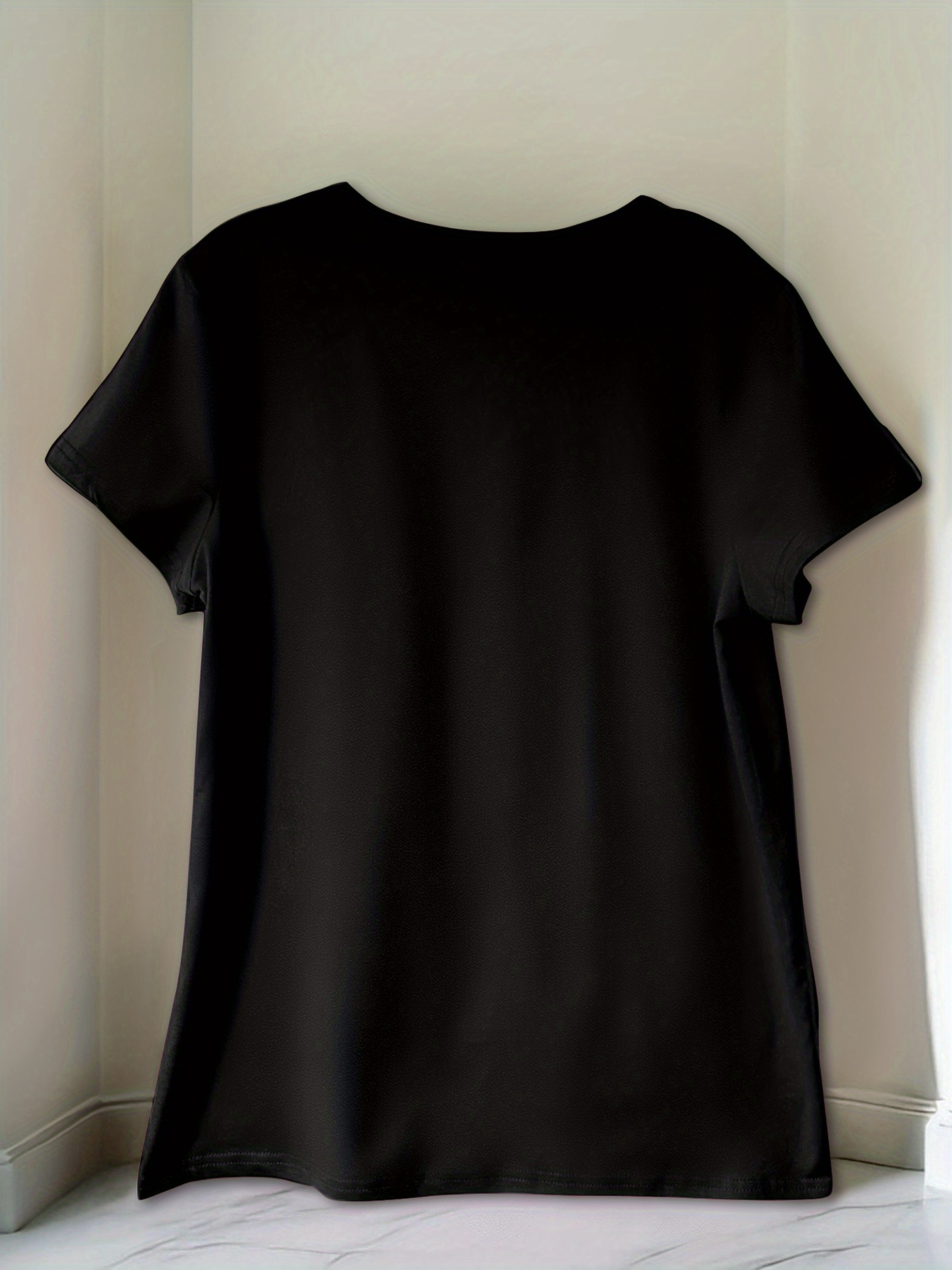 Women's Casual Short Sleeve T-Shirt with Bold "I Before E" Slogan Print - Stretch Polyester Blend, Round Neck, Machine Washable, Spring/Summer Vacation Style, Ladies T Shirts, Geometric Pattern Tee, Comfortable Fit Tee