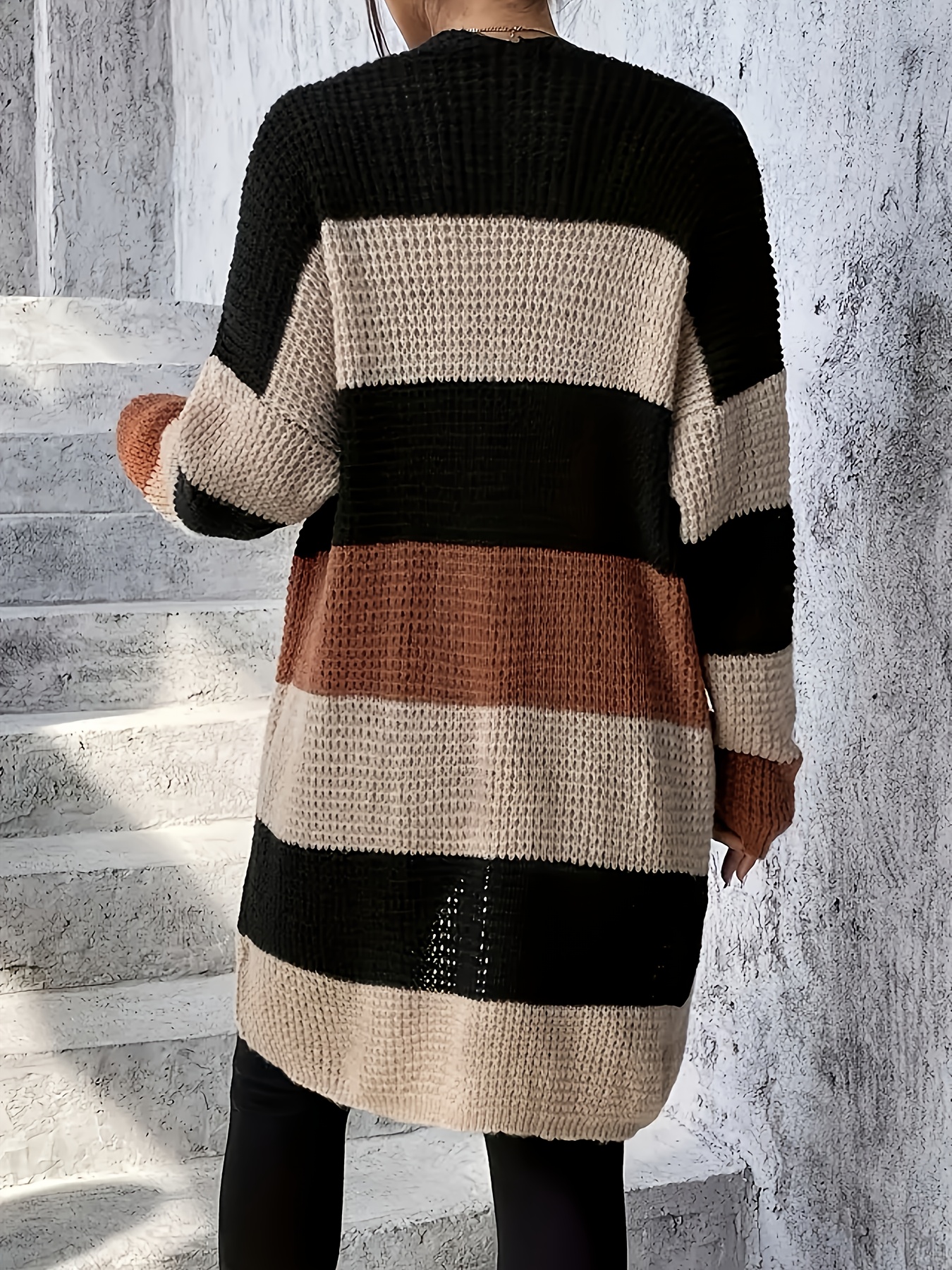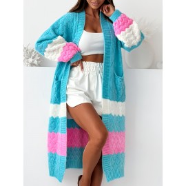 [Elegant Cardigan] Soft Elegant Women's Color Block Cardigan | Long Sleeve Mid-Length Sweater with Pockets, Relaxed Fit for Fall Winter, Casual & Formal Outfits