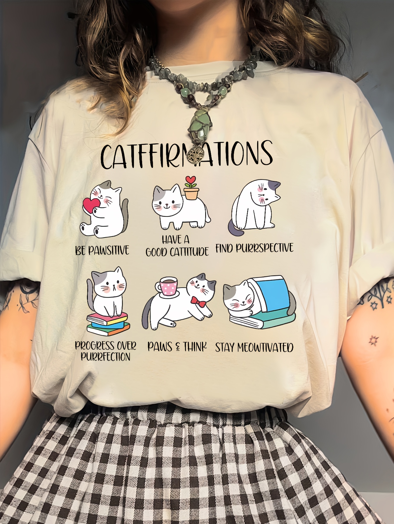 [Funny Cat] Women's Casual T-Shirt | 97% Polyester 3% Elastane | Cat Affirmations Print, All-Season Comfort, Funny Cat Lover Tee, 180g/m², Knit Fabric