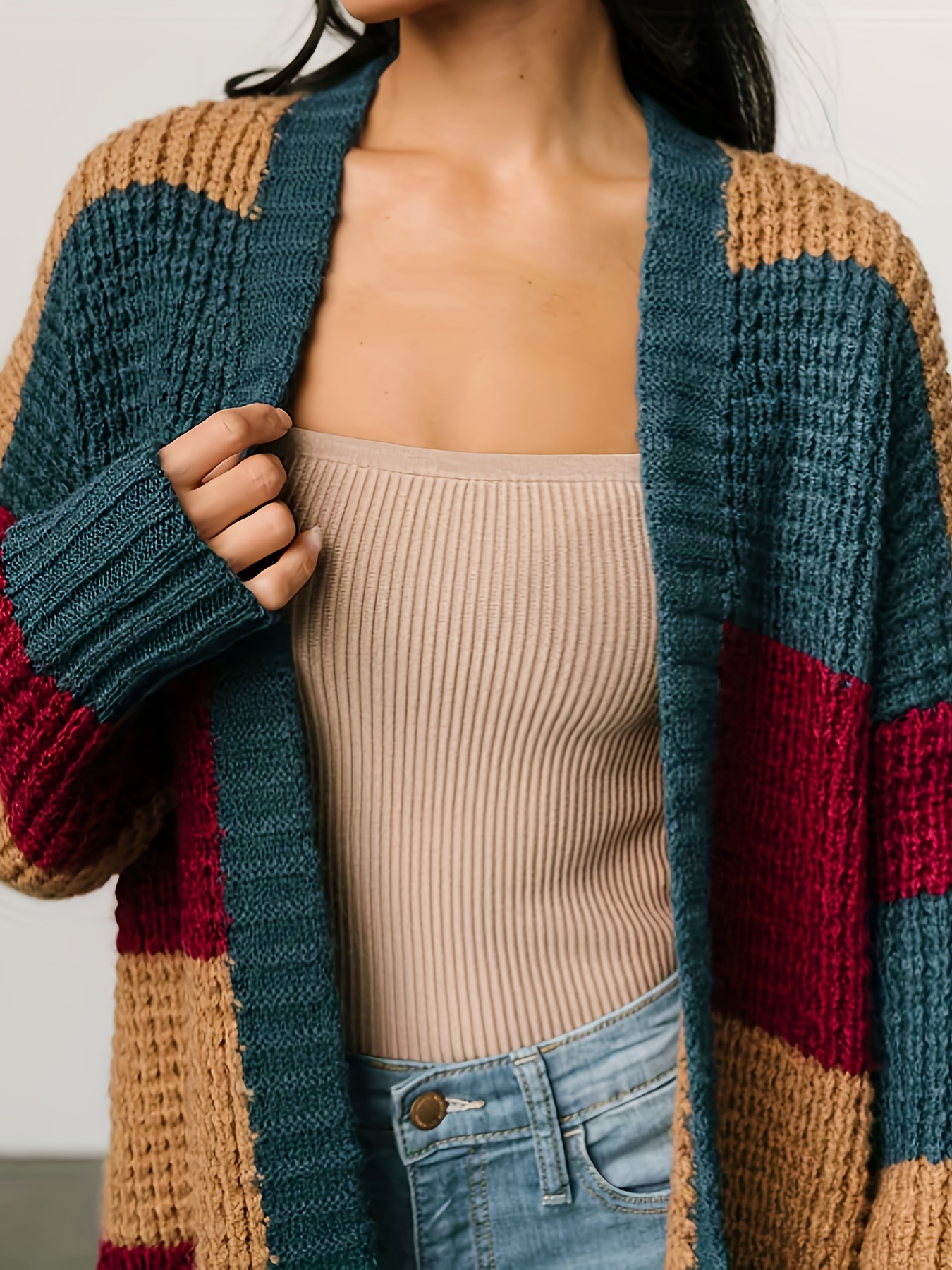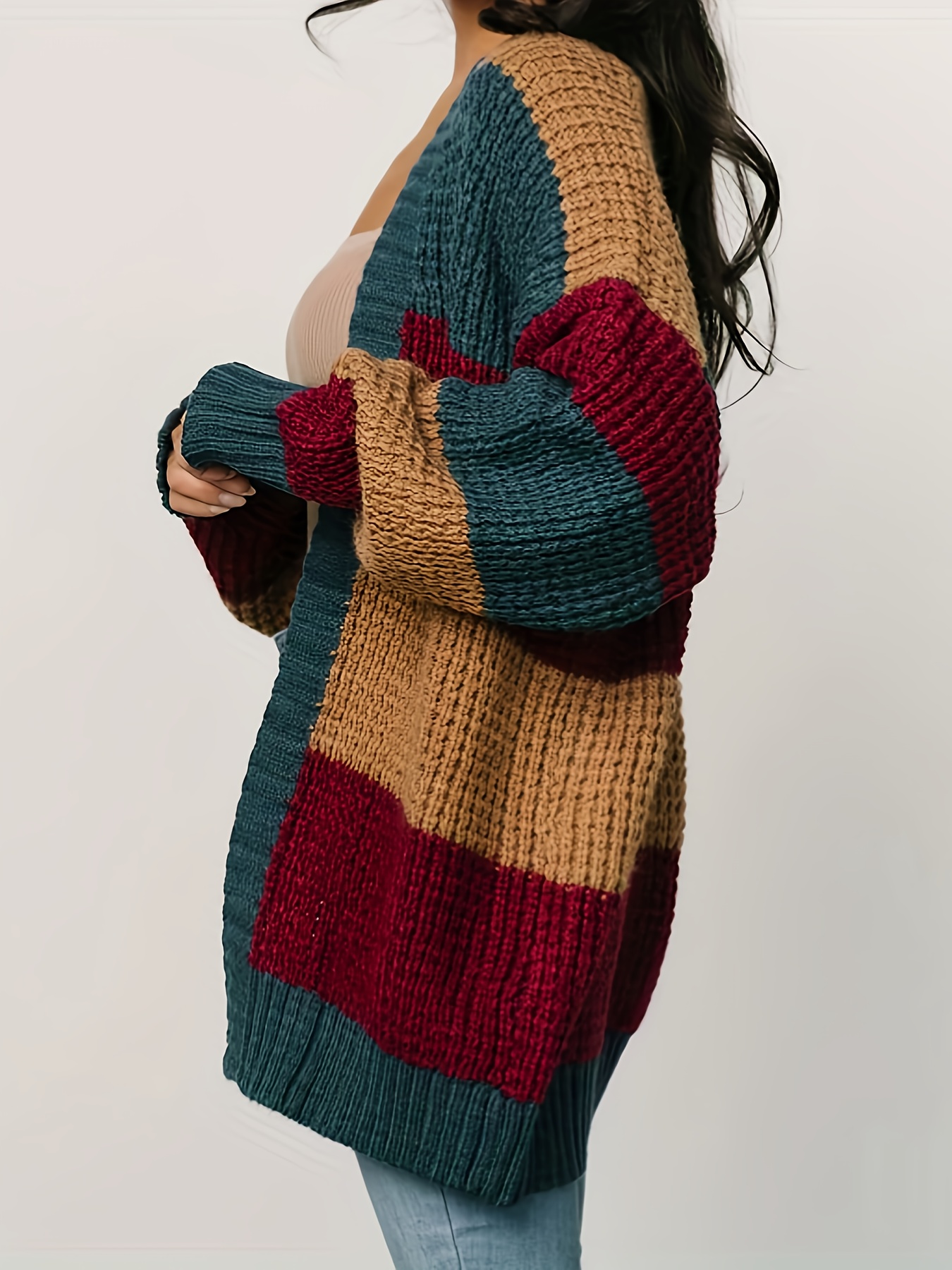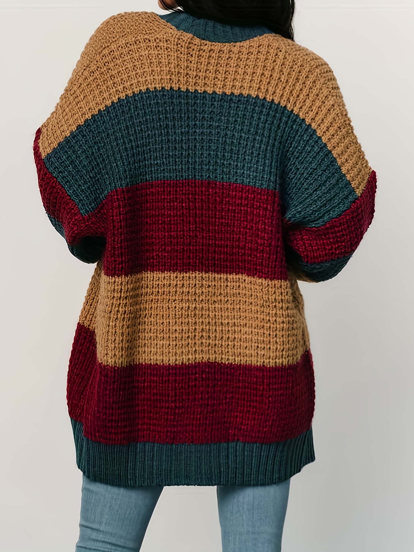 Plus Size, Women's Plus Size Autumn/Winter Striped Design Cardigan Sweater