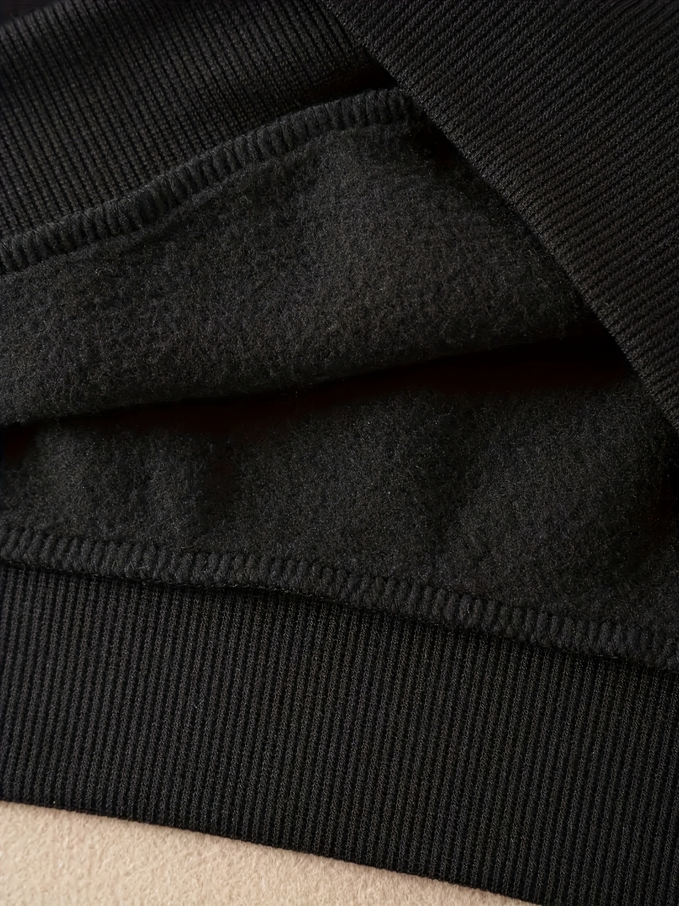 [Oxford University Alphabet Print] Oxford University Alphabet Print Sweatshirt - Casual Crew Neck, Thickened Lined Long Sleeve, 100% Polyester Knit Fabric, 250gsm - Black
