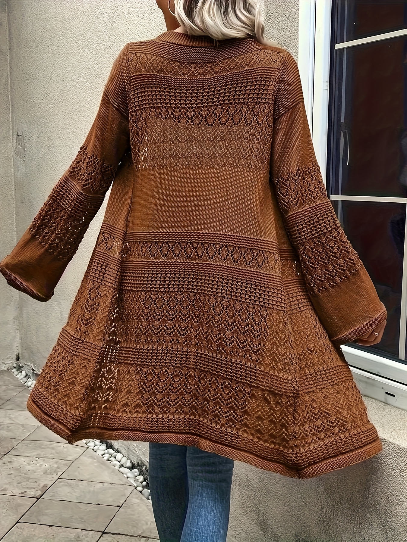 Plus Size, Plus-size fashionable solid openwork cardigan, casual long-sleeve crochet cardigan